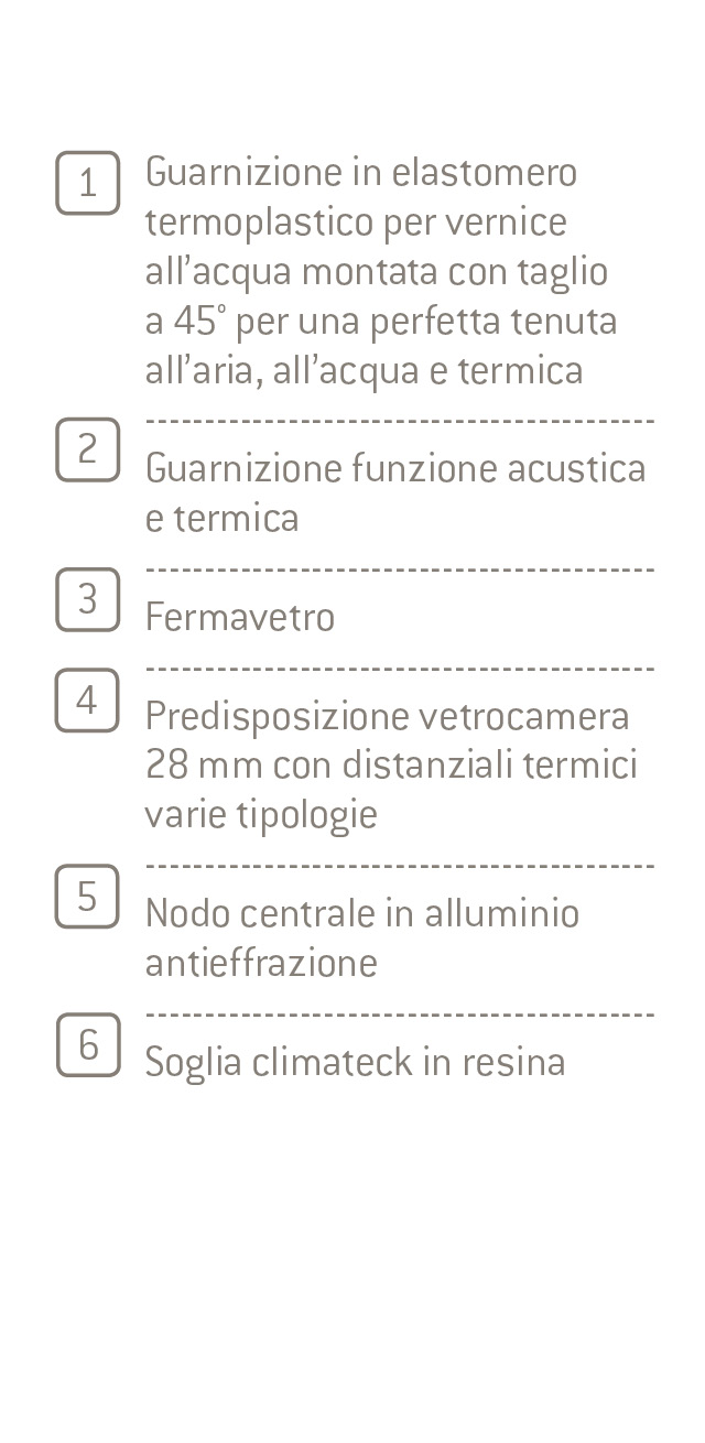 Un’evoluzione del serramento alzante scorrevole è la versione “Imago” che permette di ridurre al minimo il profilo perimetrale in legno dell’anta apribile e di eliminarlo completamente per la parte fissa che diventa interamente in vetro.